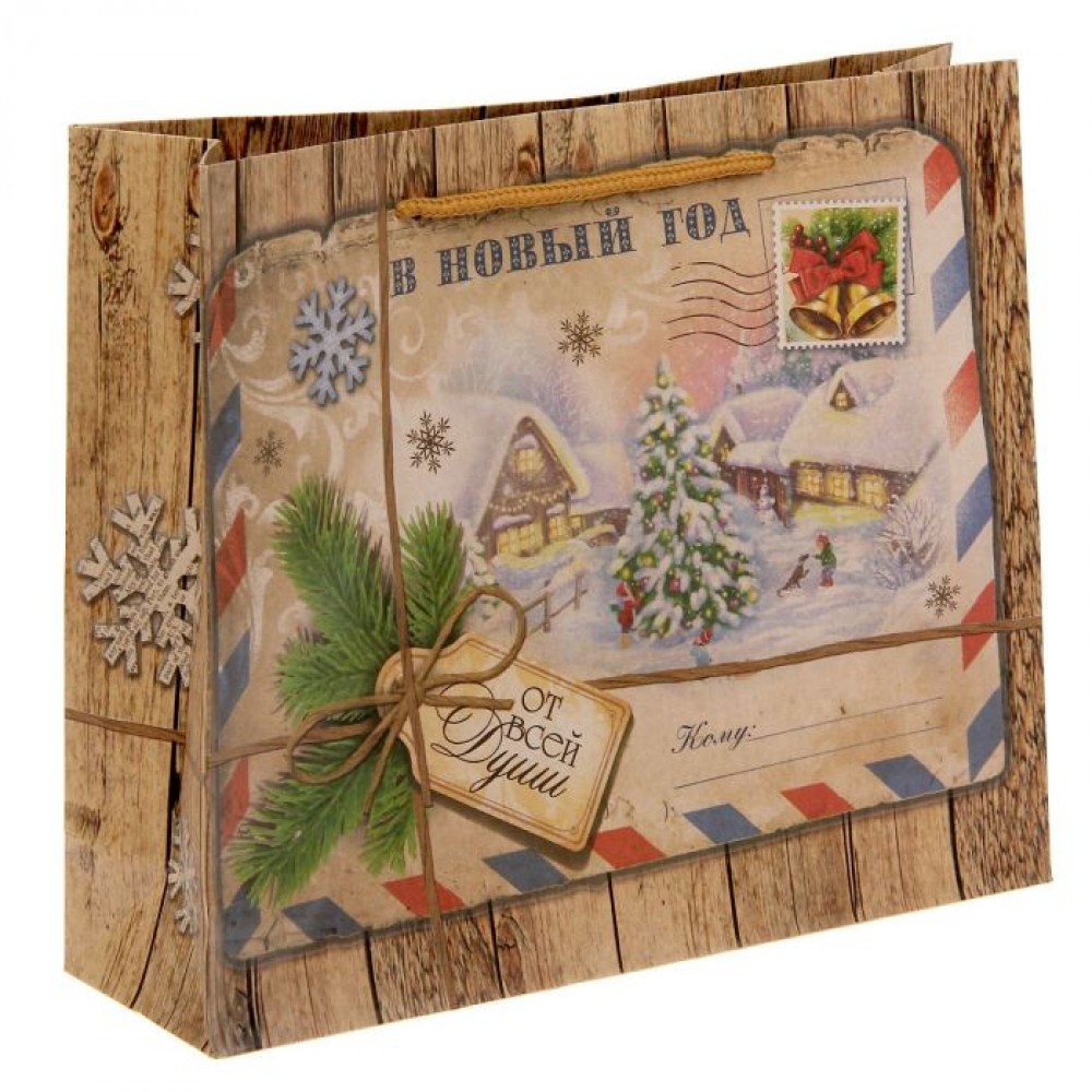 Пакет горизонтальный крафт "Новогодняя почта"